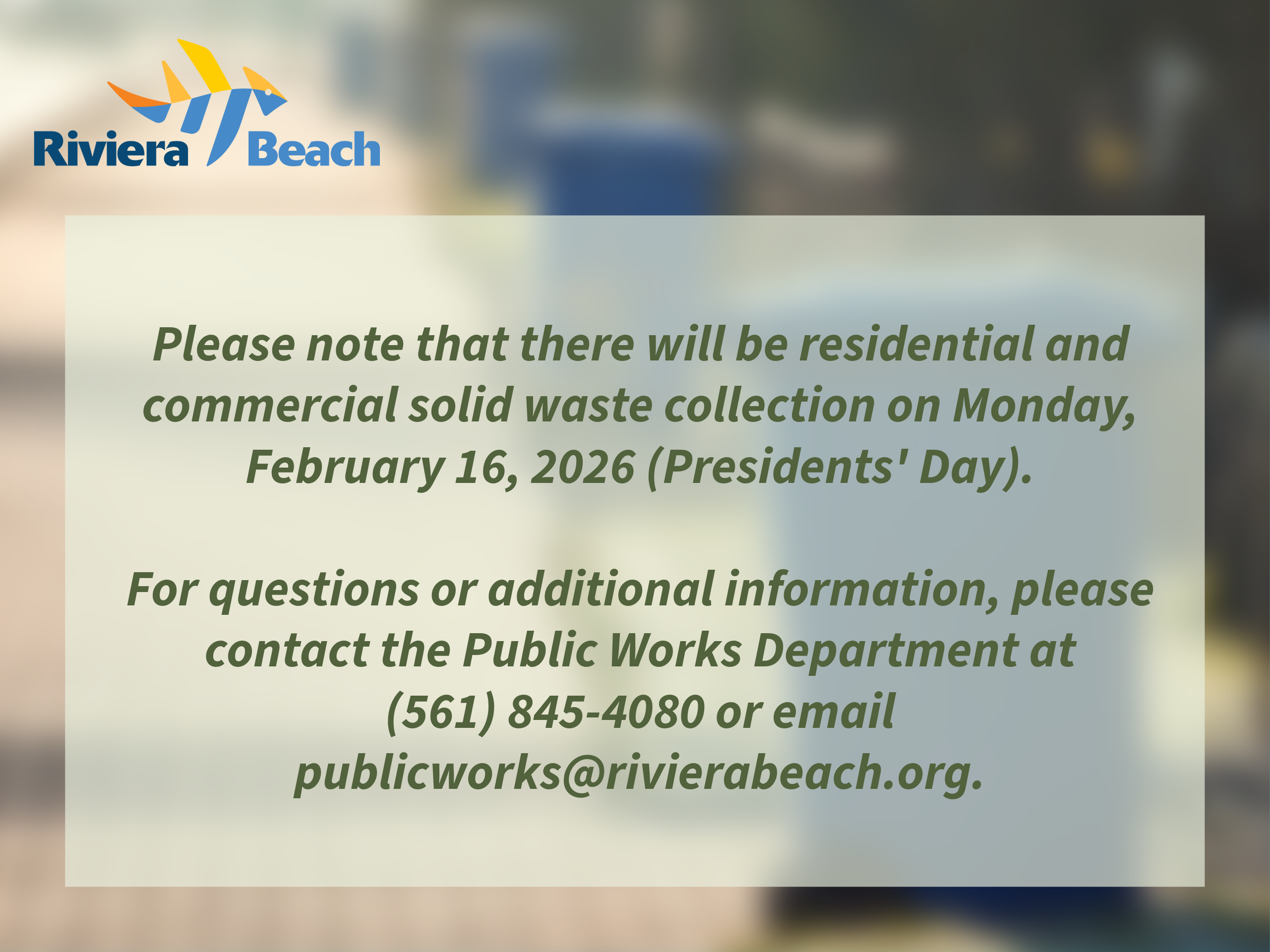 2/11/2026 - President's Day Trash Collection