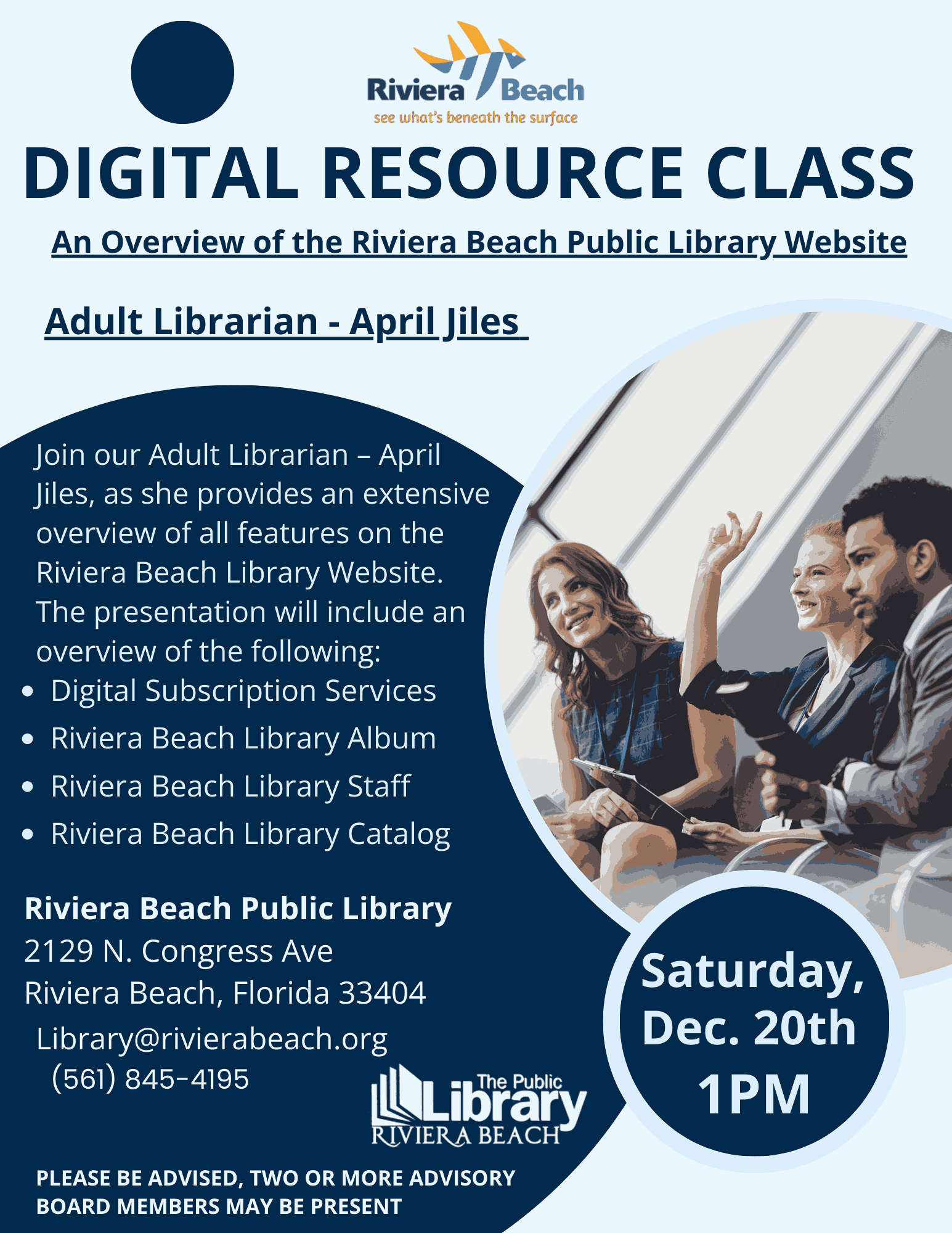Email: Library@rivierabeach.org for account questions.