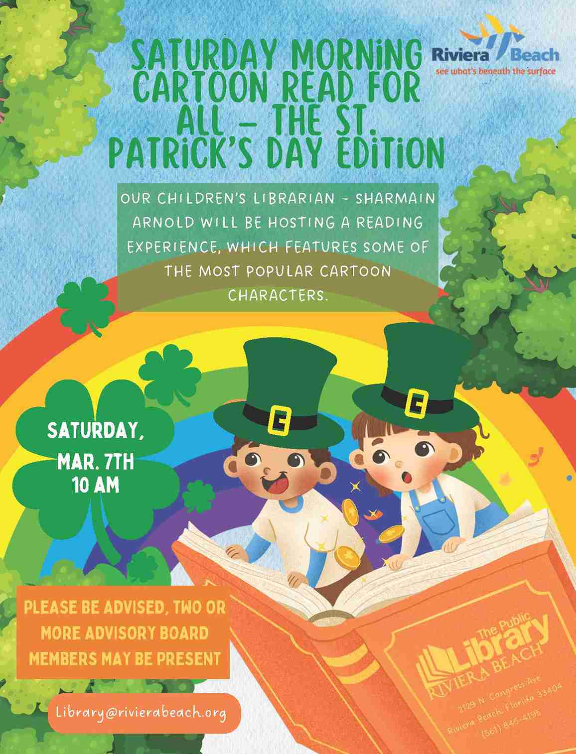 • Saturday Morning Cartoon Read For All – Stories In Celebration of St. Patrick’s Day:  Saturday, March 7th at 10am